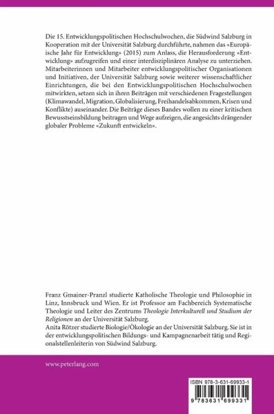 Die 15. Entwicklungspolitischen Hochschulwochen, die Südwind Salzburg in Kooperation mit der Universität Salzburg durchführte, nahmen das «Europäische Jahr für Entwicklung» (2015) zum Anlass, die Herausforderung «Entwicklung» aufzugreifen und einer interdisziplinären Analyse zu unterziehen. Mitarbeiterinnen und Mitarbeiter entwicklungspolitischer Organisationen und Initiativen, der Universität Salzburg sowie weiterer wissenschaftlicher Einrichtungen, die bei den Entwicklungspolitischen Hochschulwochen mitwirkten, setzen sich in ihren Beiträgen mit verschiedenen Fragestellungen (Klimawandel, Migration, Globalisierung, Freihandelsabkommen, Krisen und Konflikte) auseinander. Die Beiträge dieses Bandes wollen zu einer kritischen Bewusstseinsbildung beitragen und Wege aufzeigen, die angesichts drängender globaler Probleme «Zukunft entwickeln».