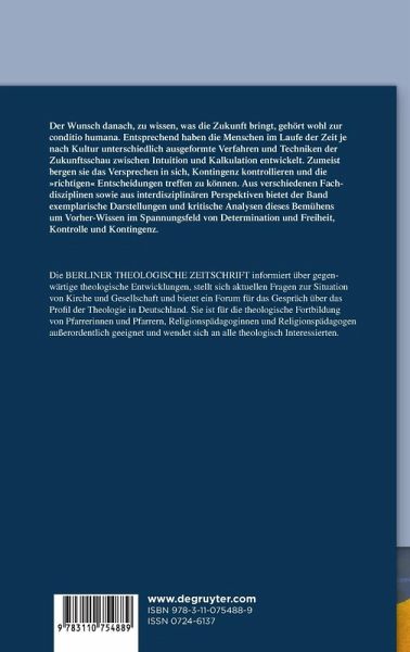 Aus dem Vergangenen kommen und im Heute leben, aber wissen wollen, was die Zukunft bringt - dieser Wunsch nach Voraus-Wissen gehört wohl zur conditio humana. Die Menschen haben im Laufe der Zeit je nach Kultur unterschiedlich ausgeformte Verfahren und Techniken der Zukunftsschau entwickelt. Der neue Band der BThZ geht dieser Frage im Gespräch zwischen theologischen, historischen und naturwissenschaftlichen Fächern nach.