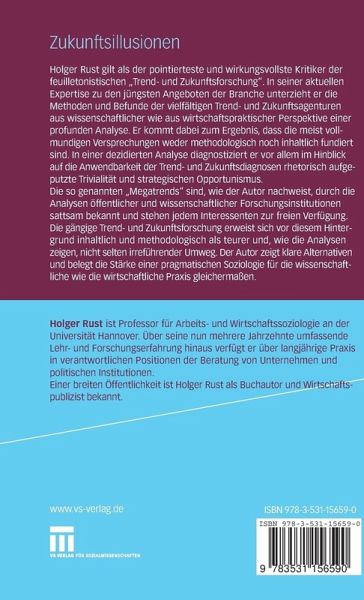 "Der mediale Boom der Zukunfts- und Trendforscher ließ einem arrivierten Sozialforscher den Kragen platzen. Holger Rust [...] liest der ganzen Zunft nun die Leviten. An sich wäre dies eine Fehde unter Wissenschaftlern, doch Rusts beißender Stil ist nicht der einzige grund, warum man 'Zukunftsillusionen' als Manager mit Gewinn liest. Schließlich bauen auf die trendigen Prognosen ja mitunter auch ganze Marktstrategien auf. [...] Vor allem der Abschnitt über die kreative Erfindung marktgängiger Vokabeln hat höchsten Unterhaltungswert." Leadership - Das Magazin für Österreichs Führungskräfte, 01-02/2009