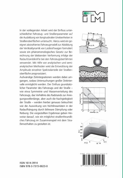 Die vorliegende Arbeit untersucht den Einfluss unterschiedlicher Fahrzeug- und Straßenparameter auf die Ausbildung von longitudinalen Straßenunebenheiten. Hierzu wird ein abstrahiertes Fahrzeugmodell zur Abbildung der Vertikaldynamik von Lkw formuliert sowie ein phänomenologisches Gesetz zur Berechnung der bleibenden Straßenverformung verwendet. Mit Hilfe von analytischen und semianalytischen Methoden wird die Entwicklung einzelner Spektralanteile der Straßenoberfläche prognostiziert.
