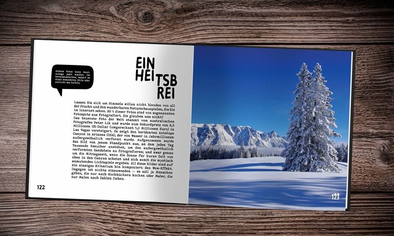Wer jetzt von diesem Buch erwartet, nach dessen Lektüre restlos alles über Fotografie zu wissen und ein Experte zu sein, dem muss ich diesen Zahn ziehen. Es wird zwar kurz über Blende, Verschlusszeit und ISO geschrieben, doch nur kurz und knackig. Hier geht es also weniger um das Technische, sondern mehr um das Gefühl für ein gutes Foto. Um Licht und Schatten, um die Positionierung des Objekts (Mensch oder Ding), um Portraits und Produktfotos, um Landschafts-, Food- und sinnliche Fotografie. Es geht ganz viel ums Kreativ- und Authentischsein. Darum, wie man mit seinem Model kommuniziert, um das Bestmögliche herauszuholen – das hat mir wirklich gut gefallen. Die Texte sind kurz und auf den Punkt und – wie nicht anders erwartet – getränkt von Humor. Es gibt viele Fotos, die das Geschriebene bildhaft machen und als Beispiel dienen. Anekdoten, Kurioses und Wissenswertes aus der Welt der Fotografie und Filmwelt (es gibt einige interessante Info aus der Rubrik „vom Film lernen“) lockern das ohnehin locker rübergebrachte Fachliche weiter auf. Die Anleitungen sind verständlich und leicht umsetzbar.