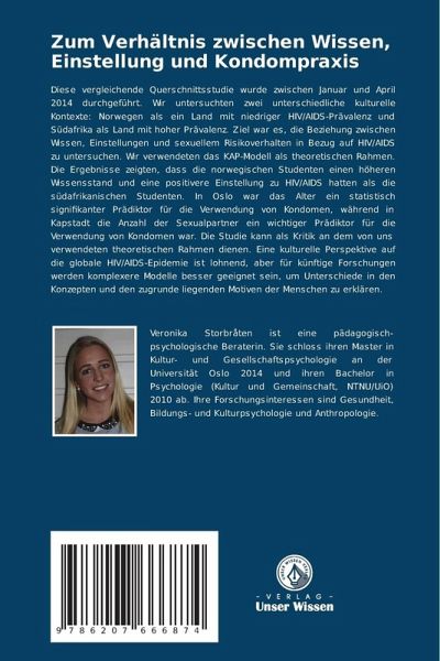 Diese vergleichende Querschnittsstudie wurde zwischen Januar und April 2014 durchgeführt. Wir untersuchten zwei unterschiedliche kulturelle Kontexte: Norwegen als ein Land mit niedriger HIV/AIDS-Prävalenz und Südafrika als Land mit hoher Prävalenz. Ziel war es, die Beziehung zwischen Wissen, Einstellungen und sexuellem Risikoverhalten in Bezug auf HIV/AIDS zu untersuchen. Wir verwendeten das KAP-Modell als theoretischen Rahmen. Die Ergebnisse zeigten, dass die norwegischen Studenten einen höheren Wissensstand und eine positivere Einstellung zu HIV/AIDS hatten als die südafrikanischen Studenten. In Oslo war das Alter ein statistisch signifikanter Prädiktor für die Verwendung von Kondomen, während in Kapstadt die Anzahl der Sexualpartner ein wichtiger Prädiktor für die Verwendung von Kondomen war. Die Studie kann als Kritik an dem von uns verwendeten theoretischen Rahmen dienen. Eine kulturelle Perspektive auf die globale HIV/AIDS-Epidemie ist lohnend, aber für künftige Forschungenwerden komplexere Modelle besser geeignet sein, um Unterschiede in den Konzepten und den zugrunde liegenden Motiven der Menschen zu erklären.