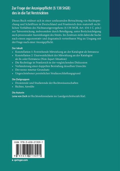 138 StGB, Art 434-1 C. pén.) zur Tatverstrickung, insbesondere durch Beteiligung, unter Berücksichtigung auch prozessualer Auswirkungen des Streits. Im Zentrum steht dabei die Suche nach einem argumentativ und dogmatisch vertretbaren Weg im Umgang mit der Frage nach einer Anzeigepflicht.