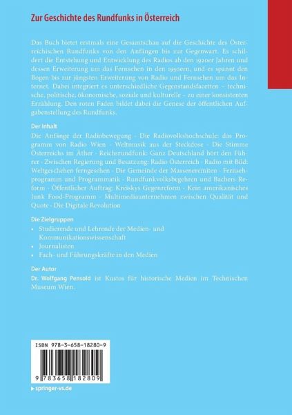 Das Buch bietet erstmals eine Gesamtschau auf die Geschichte des Österreichischen Rundfunks von den 1920er Jahren bis zur Gegenwart. Es schildert die Entstehung und Entwicklung des Radios ab 1924 und dessen Erweiterung um das Fernsehen ab 1955, und es spannt den Bogen bis zur jüngsten Erweiterung von Radio und Fernsehen um das Internet. Dabei integriert es unterschiedliche Gegenstandsfacetten - technische, politische, ökonomische, soziale und kulturelle - zu einer konsistenten Erzählung. Den roten Faden bildet dabei die Genese der öffentlichen Aufgabenstellung des Rundfunks.