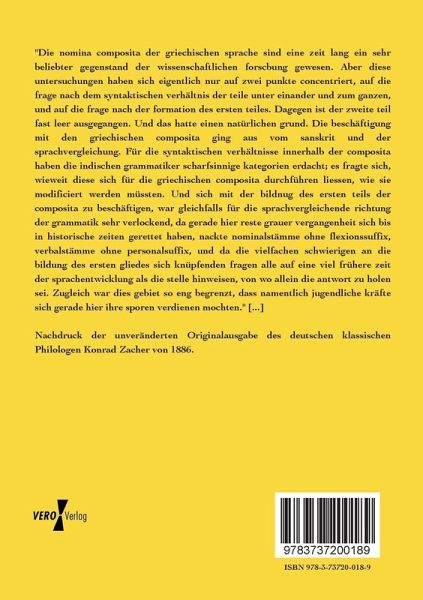 "Die nomina composita der griechischen sprache sind eine zeit lang ein sehr beliebter gegenstand der wissenschaftlichen forscbung gewesen. Aber diese untersuchungen haben sich eigentlich nur auf zwei punkte concentriert, auf die frage nach dem syntaktischen verhältnis der teile unter einander und zum ganzen, und auf die frage nach der formation des ersten teiles. Dagegen ist der zweite teil fast leer ausgegangen. Und das hatte einen natürlichen grund. Die beschäftigung mit den griechischen composita ging aus vom sanskrit und der sprachvergleichung. Für die syntaktischen verhältnisse innerhalb der composita haben die indischen grammatiker scharfsinnige kategorien erdacht; es fragte sich, wieweit diese sich für die griechischen composita durchführen liessen, wie sie modificiert werden müssten. Und sich mit der bildnug des ersten teils der composita zu beschäftigen, war gleichfalls für die sprachvergleichende richtung der grammatik sehr verlockend, da gerade hier reste grauer vergangenheit sich bis in historische zeiten gerettet haben, nackte nominalstämme ohne flexionssuffix, verbalstämme ohne personalsuffix, und da die vielfachen schwierigen an die bildung des ersten gliedes sich knüpfenden fragen alle auf eine viel frühere zeit der sprachentwicklung als die stelle hinweisen, von wo allein die antwort zu holen sei. Zugleich war dies gebiet so eng begrenzt, dass namentlich jugendliche kräfte sich gerade hier ihre sporen verdienen mochten." [...]