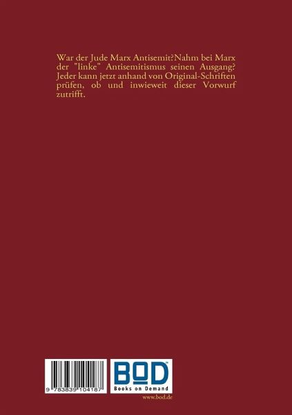 War der Jude Marx Antisemit?Nahm bei Marx der "linke" Antisemitismus seinen Ausgang?Jeder kann jetzt anhand von Original-Schriften prüfen, ob und inwieweit dieser Vorwurf zutrifft.