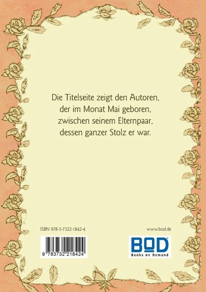 Die Titelseite zeigt den Autoren,der im Monat Mai geboren,zwischen seinem Elternpaar,dessen ganzer Stolz er war.