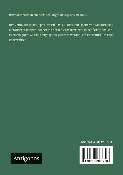 Unveränderter Nachdruck der Originalausgabe von 1875. Der Verlag Antigonos spezialisiert sich auf die Herausgabe von Nachdrucken historischer Bücher. Wir achten darauf, dass diese Werke der Öffentlichkeit in einem guten Zustand zugänglich gemacht werden, um ihr kulturelles Erbe zu bewahren.