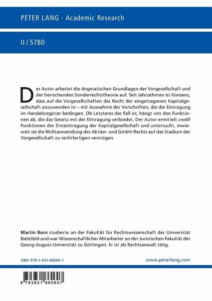 Der Autor arbeitet die dogmatischen Grundlagen der Vorgesellschaft und der herrschenden Sonderrechtstheorie auf. Seit Jahrzehnten ist Konsens, dass auf die Vorgesellschaften das Recht der eingetragenen Kapitalgesellschaft anzuwenden ist - mit Ausnahme der Vorschriften, die die Eintragung im Handelsregister bedingen. Ob Letzteres der Fall ist, hängt von den Funktionen ab, die das Gesetz mit der Eintragung verbindet. Der Autor ermittelt zwölf Funktionen der Ersteintragung der Kapitalgesellschaft und untersucht, inwieweit sie die Nichtanwendung des Aktien- und GmbH-Rechts auf das Stadium der Vorgesellschaft zu rechtfertigen vermögen.