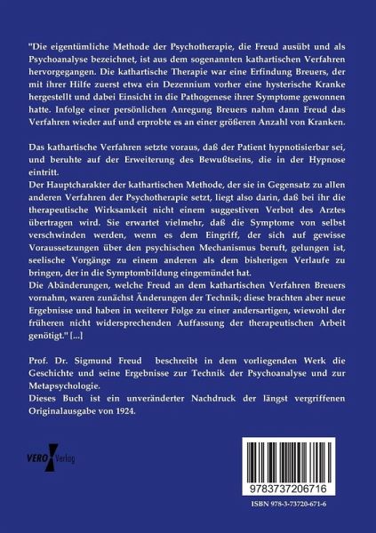 Die Abänderungen, welche Freud an dem kathartischen Verfahren Breuers vornahm, waren zunächst Änderungen der Technik; diese brachten aber neue Ergebnisse und haben in weiterer Folge zu einer andersartigen, wiewohl der früheren nicht widersprechenden Auffassung der therapeutischen Arbeit genötigt." [...]