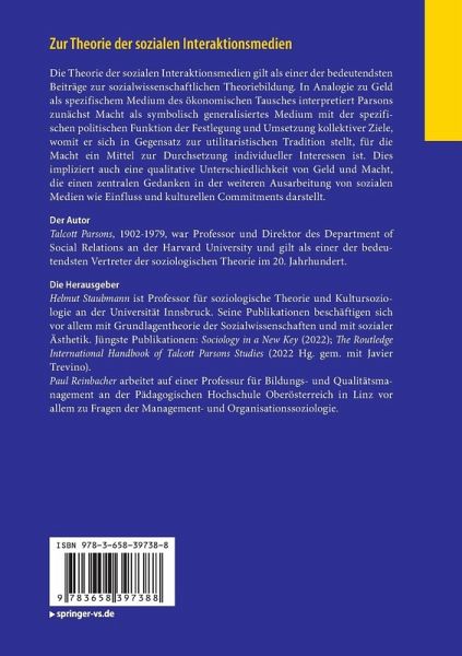 Editorische Vorbemerkung.- Einleitung: Talcott Parsons und die Theorie der sozialen Interaktionsmedien.- Über den Begriff der politischen Macht.- Über den Begriff Einfluss.- Über den Begriff Wert-Commitments.- Sozialstruktur und die symbolischen Medien des Austausches.