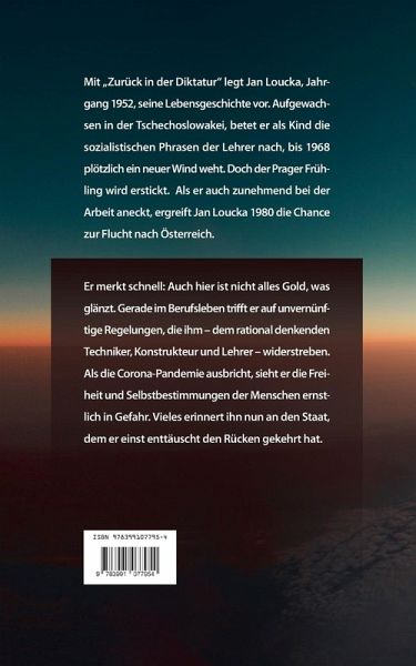 Mit "Zurück in der Diktatur" legt Jan Loucka, Jahrgang 1952, seine Lebensgeschichte vor. Aufgewachsen in der Tschechoslowakei, betet er als Kind die sozialistischen Phrasen der Lehrer nach, bis 1968 plötzlich ein neuer Wind weht. Doch der Prager Frühling wird erstickt. Als er auch zunehmend bei der Arbeit aneckt, ergreift Jan Loucka 1980 die Chance zur Flucht nach Österreich.Er merkt schnell: Auch hier ist nicht alles Gold, was glänzt. Gerade im Berufsleben trifft er auf unvernünftige Regelungen, die ihm - dem rational denkenden Techniker, Konstrukteur und Lehrer - widerstreben. Als die Corona-Pandemie ausbricht, sieht er die Freiheit und Selbstbestimmungen der Menschen ernstlich in Gefahr. Vieles erinnert ihn nun an den Staat, dem er einst enttäuscht den Rücken gekehrt hat.