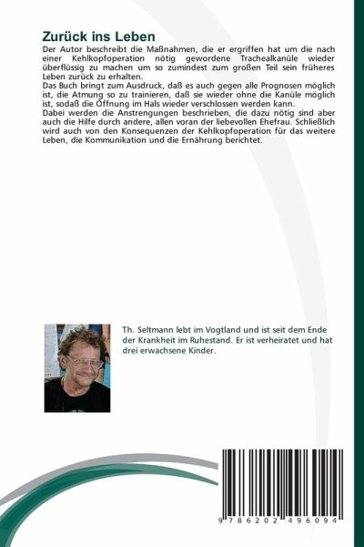 Der Autor beschreibt die Maßnahmen, die er ergriffen hat um die nach einer Kehlkopfoperation nötig gewordene Trachealkanüle wieder überflüssig zu machen um so zumindest zum großen Teil sein früheres Leben zurück zu erhalten. Das Buch bringt zum Ausdruck, daß es auch gegen alle Prognosen möglich ist, die Atmung so zu trainieren, daß sie wieder ohne die Kanüle möglich ist, sodaß die Öffnung im Hals wieder verschlossen werden kann.Dabei werden die Anstrengungen beschrieben, die dazu nötig sind aber auch die Hilfe durch andere, allen voran der liebevollen Ehefrau. Schließlich wird auch von den Konsequenzen der Kehlkopfoperation für das weitere Leben, die Kommunikation und die Ernährung berichtet.
