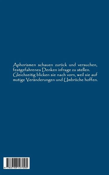 Aphorismen schauen zurück und versuchen, festgefahrenes Denken infrage zu stellen. Gleichzeitig blicken sie nach vorn, weil sie auf mutige Veränderungen und Umbrüche hoffen.