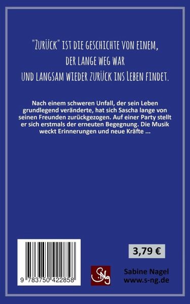 "Zurück" ist die Geschichte von einem, der lange weg war und langsam wieder zurück ins Leben findet.Nach einem schweren Unfall, der sein Leben grundlegend veränderte, hat sich Sascha lange von seinen Freunden zurückgezogen. Auf einer Party stellt er sich erstmals der erneuten Begegnung. Die Musik weckt Erinnerungen und neue Kräfte ...