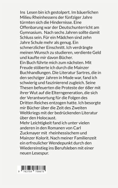 Ein Leben zwischen den Zeilen: Eine Liebeserklärung an die LiteraturIns Lesen bin ich gestolpert. Hindernisse stapelten sich im bäuerlichen Milieu Rheinhessens der fünfziger Jahre. Eine Offenbarung war für mich der Deutschunterricht im Gymnasium. Lebhaft erinnere ich mich an das gelbe Reclam Heft Aus dem Leben eines Taugenichts von Eichendorff. Zum Ärger des Vaters und der Geschwister verkroch ich mich hinter Büchern. In Ihren Augen pure Faulheit. Damit sollte nach sechs Jahren im Gymnasium Schluss sein. Für ein Mädchen sind zehn Jahre Schule mehr als genug. Ein schmerzlicher Wendepunkt. Ich verdrängte meinen Wunsch zu studieren, verdiente Geld und kaufte mir davon Bücher. Ein Buch führte mich zum nächsten. Genussvolles Stöbern in Mainzer Buchhandlungen und Lesen am Rheinufer. Die in den sechziger Jahren angesagte Literatur von Sartre fand ich schwierig, gleichzeitig faszinierte sie mich. Seine Thesen befeuerten die Proteste der Achtundsechziger mit ihrer Wut auf die Elterngeneration, die sich ihrer Verantwortung für die Folgen des Dritten Reichs entzogen hatten. Ich besorgte mir Bücher über die Zeit des Zweiten Weltkrieges mit der beklemmenden jüdischen Literatur. Erschreckend, über die Gräueltaten in unserer nächsten Umgebung von der in Mainz geborenen und aufgewachsenen Anna Seghers zu lesen. Niederschmetternd die Lektüren von Elie Wiesel, Stefan Zweig und anderen. Mehr Leichtigkeit fand ich in Carl Zuckmayers Romanen mit starkem rheinhessischen und Mainzer Kolorit. Sie weckten eigene Erinnerungen an die ausgelassene Freude bei der Mainzer Fastnacht, aber auch an die weniger frohen Arbeiten im Weinberg.Neue spannende Welten entdeckte ich unter anderem in Büchern von Tellkamp, Amos Oz und Murakami.Nach meiner Familienzeit ein erfreulicher Wendepunkt durch den Wiedereinstieg ins Berufsleben mit einer neuen Lesespur. Als Sekretärin eines Philosophie-Professors lernte ich eine neue Form des Lesens kennen, für mich überraschend spannend und lehrreich. Bücher prägten und prägen mich bis heute. Sie haben Erinnerungen angeschubst, Vergangenes, aber auch Gegenwärtiges mit gesellschaftlichen und politischen Fragen erhellt. Fremde Welten haben sie mir erschlossen, und nicht zuletzt habe ich viele Bücher einfach nur genussvoll gelesen. Meine Liebe zur Literatur hat mir oft einen Weg zu mir selbst gezeigt, trotz vieler Hindernisse von klein auf.