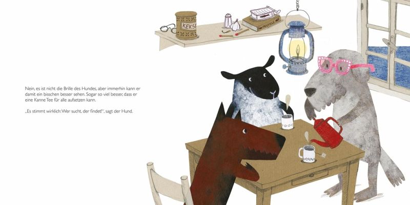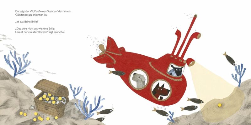 Auch ein blinder Hund findet mal eine Brille ... oder wie war das noch gleich? Wolf und Schaf treffen auf einen verzweifelten Hund: Er hat seine Brille im Meer verloren. Kurzerhand bauen sie ein U-Boot und begeben sich auf die Suche. Unter Wasser entdecken sie nicht nur eine neue Brille für den Hund, sondern vor allem eins: Ein Abenteuer verbindet! Es lohnt sich also, in die Tiefe zu gehen, um neue Freundschaften zu schließen. Marco Trevisan erzählt in dem Bilderbuch "Zusammen sieht man mehr" von Freundschaft, Vertrauen und Zusammenhalt - mit charmanten Figuren und ausdrucksstark illustriert. Empfohlen für Kinder ab drei Jahren.