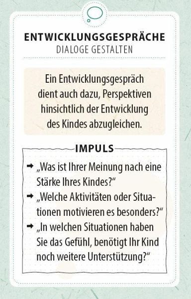 Mit Eltern im Dialog bleibenEine vertrauensvolle Zusammenarbeit zwischen Kita und Eltern ist der Schlüssel zu einer starken Beziehung und einer erfolgreichen Entwicklung der Kinder. Von Anfang an eingebunden, entsteht ein gemeinsamer Weg im Interesse des Kindes. Dieses Kartenset unterstützt dabei, die Zusammenarbeit gezielt zu gestalten:- 32 kompakte Praxiskarten mit hilfreichen Impulsen- Reflexionen und Aufgaben für das gesamte Team- Praxisnah und alltagstauglich - für eine gelingende ElternarbeitSo wird es möglich, Eltern aktiv einzubeziehen und eine vertrauensvolle Basis für die Förderung und Entwicklung der Kinder zu schaffen!Impulsquartett für die Elternarbeit in Kita & Vorschule