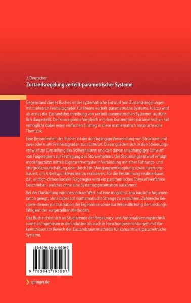 Das Buch richtet sich an Studierende der Regelungs- und Automatisierungstechnik sowie an Ingenieure in der Industrie als auch in Forschungseinrichtungen mit Vorkenntnissen im Bereich der Zustandsraummethodik fürkonzentriert-parametrische Systeme.