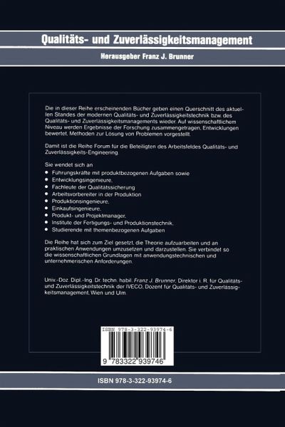 Probabilistische Bewertung hinsichtlich Zuverlässigkeit, Verfügbarkeit, Sicherheit unter systemadequater Modellierung zukunftsorientierter Technologien. Für Fach- und Führungskräfte mit Fachhochschul- oder Universitätsabschluß einer technischen/physikalischen/wirtschaftswissenschaftlichen Fachrichtung.
