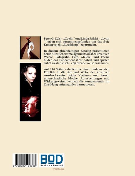 "Zweiklang" ist eine freie Künstlervereinigung , gegründet im April 2010 in Ulm, bestehend aus Peter Zöls "Coelin" und Linda Sziklai "Lynn". Dieses postmoderne Projekt hat zum Ziel, Altes mit Neuem, Traditionelles mit Modernem und Zurückhaltung mit Provokantem zu verbinden und die daraus resultierenden Ergebnisse umzusetzen Der Name des Projekts ist Programm und lässt sich am besten mit einem dynamischen, sich wie selbstverständlich ergänzenden Zusammenspiel aus Wort und Farbe vergleichen. Weiter noch definiert sich "Zweiklang" durch eine gewisse kontrastierende Harmonie sowie verbundene Gegensätze, die, jeder für sich mit eigenen Charaktereigenschaften versehen, ein frisches und innovatives Gesamtkonzept ergeben. Malerei, Film, Fotographie und Poesie sind Hauptbestandteil der Arbeiten beider Künstler. Die Schaffensweise zwischen Coelin und Lynn ist geprägt von unabhängiger Kreativität und Ausdruck, von Interpretationen, Gesprächen und Analysen aus vielerlei Bereichen wie zum Beispiel der mentalen Ebene, der Traumwelt und des Unterbewussten. So unterschiedlich jeder Künstler für sich auch sein mag, so selbstverständlich findet er im jeweils Anderen Dinge, Gedanken und Ansichten, die die eigene Fähigkeit, sich kreativ auszudrücken, verstärken und unterstützen, ja vervollkommnen. Sowohl Coelin als auch Lynn haben bereits viele Entwicklungsstufen des eigenen künstlerischen Wachstums beschritten. Von Ausstellungen und Wettbewerben über Studium und Autodidaktik bis hin zur Selbstständigkeit und literarischen Veröffentlichungen erstreckt sich der Erfahrungshorizont der Gründer von "Zweiklang".Das erste nun veröffentlichte Werk von "Zweiklang", das diesen Namen trägt, bildet dieser Katalog mit einer Übersicht verschiedener malerischer wie auch poetischer Kreationen. Weitere gemeinsame Veröffentlichungen sind geplant und sollen unter anderem auch Bereiche aus der Fotografie mit einschließen.