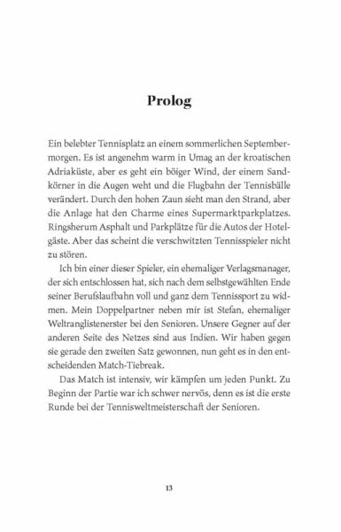 Kurz vor seinem 60. Geburtstag beschließt Joerg Pfuhl, erfolgreicher Verlagsmanager, sich dem zu widmen, wovon er immer geträumt hat: dem Tennissport. Er kündigt seinen Job, macht Trainingspläne und nimmt sich vor, so gut zu werden und so weit zu kommen wie nur irgend möglich. Mit jedem Tag seines neuen Lebens wächst seine Leidenschaft. Er engagiert einen Trainer, nimmt an ersten Wettkämpfen teil und reist bald um die ganz Welt, um Erfahrungen auf internationalen Turnieren zu sammeln. Sein Ziel: Ein Platz in der Top Ten seiner Altersklasse.