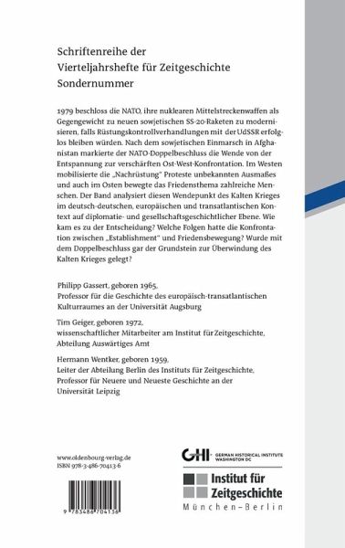 Am 12. Dezember 1979 beschloss die NATO, ihr Arsenal nuklearer Mittelstreckenwaffen als Gegengewicht zu neuen sowjetischen SS-20-Raketen zu modernisieren, falls Rüstungskontrollverhandlungen mit der UdSSR erfolglos bleiben würden. Neben dem sowjetischen Einmarsch in Afghanistan markierte der NATO-Doppelbeschluss die Wende von der Entspannungsära hin zur verschärften Ost-West-Konfrontation. Im Westen mobilisierte die "Nachrüstung" gesellschaftlichen Protest unbekannten Ausmaßes mit Menschenketten, Sitzblockaden und Großdemonstrationen. Auch jenseits des "Eisernen Vorhangs" bewegte das Friedensthema zahllose Menschen. Die Studie analysiert diesen Wendepunkt des Kalten Krieges im deutsch-deutschen, europäischen und transatlantischen Kontext auf diplomatie- und gesellschaftsgeschichtlicher Ebene. Wie kam es zu der Entscheidung, die zunächst einen Klimasturz im Ost-West-Verhältnis nach sich zog? Welche langfristigen gesellschaftlichen Folgen hatte die Konfrontation zwischen politischem "Establishment" und Friedensbewegung? Wurde mit dem Doppelbeschluss sogar paradoxer Weise der Grundstein zur Überwindung des Kalten Krieges gelegt?