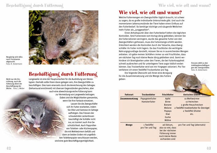 Obwohl die possierlichen Zwergschläfer erst seit den 1990er-Jahren in Mitteleuropa als Haustiere gehalten werden, haben sie bereits eine große Fangemeinde gewonnen. Ihre Popularität verdanken die sympathischen Fellknäuel nicht nur ihrem drolligen Aussehen, das an Miniatureichhörnchen denken lässt, sondern auch ihren vielfältigen Lautäußerungen und Verhaltensweisen. Sie sind ideale Tiere für alle Kleinsäugerfans, die sich mit dem Verhalten und der Nachzucht ihrer Pfleglinge beschäftigen möchten.Art für Art stellen Ihnen die Bücher dieser Reihe die beliebtesten Kleinsäuger vor. Jeder Band bietet Ihnen detaillierte, praxisnahe Pflegeanleitungen und Sie finden alle Informationen, die Sie brauchen, um Ihre Tiere erfolgreich zu vermehren. Alle wichtigen Fragen von der Unterbringung über die Einrichtung, die technische Ausstattung, die artgerechte Ernährung bis zur Vorbeugung von Krankheiten werden mit zahlreichen Tricks und Kniffen beantwortet. Erfahrene, langjährige Züchter verraten, wie Sie die Tiere zur Fortpflanzung bewegen und die Jungtiere gesund aufziehen können.Das alles durchgängig farbig, großzügig bebildert und attraktiv gestaltet - Art für Art.