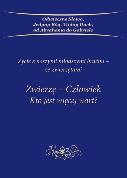 Czy by¿o nam wiadome, ¿e nasi bracia i siostry - zwierz¿ta - wch¿aniaj¿ atmosfer¿ naszych wräe¿, my¿li i s¿ów, a wywöane obrazy wp¿ywaj¿ odpowiednio na ich zachowanie? Möemy komunikowä si¿ z nimi poprzez przesy¿anie d¿wi¿ku i obrazu. Liobani, istota duchowa, uczy nas rozumie¿ naszych dalszych bli¿nich, szanowä ich jako przyjació¿ i pokazuje nam, jak z nimi post¿powä. W ten sposób zwierz¿ta zostaj¿ uwolnione od programów, którymi cz¿owiek je zniewoli¿, znieksztäci¿, zhäbi¿ i obci¿¿y¿. Ksi¿¿ka zawiera objawienie z nieznanymi dot¿d wskazówkami na temat wewn¿trznego ¿ycia zwierz¿t. Cenny przewodnik dla kädego mi¿önika zwierz¿t.