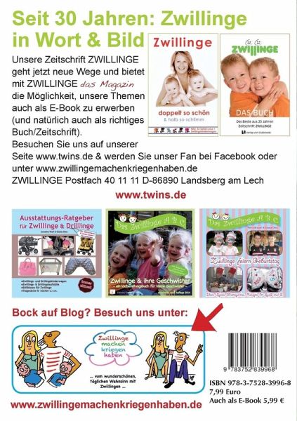 Wie immer ist auch in Band Nr. 33 eine bunte Mischung an Zwillings- und Drillingsthemen enthalten. Diesmal: Gestose - plötzliche Entbindung - Anpassungsschwierigkeiten für die Mama, Zwillingsworkshop in Berlin, Fütterungshilfe macht Raubtiertfütterungen leicht, rutschfeste Sommerschuhe, Sonnenschutz und Sicherheit im Wasser, Fahrradfahren mit dem Kinderanhänger, Vorlesen schafft Leseratten, Rezept: Stockbrot am Lagerfeuer oder auf dem Grill, Tischmanieren bei Zwillingen, Trennung in Kindergarten & Schule?, starke Mütter - schwache Väter, Tipps für den Schulranzenkauf, Frühchenverein wird 25, Zwillingsstudie: Rauchen verändert Aussehen und Attraktivität, Urlaub mit Zwillingen im Elsaß, wo sind Babyprodukte teurer als bei uns in Deutschland? Europavergleich hilft im Urlaub Kosten sparen.