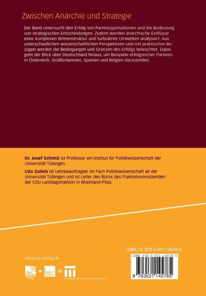 Der Band untersucht den Erfolg von Parteiorganisationen und die Bedeutung von strategischen Entscheidungen. Zudem werden anarchische Einflüsse einer komplexen Binnenstruktur und turbulente Umwelten analysiert. Aus unterschiedlichen wissenschaftlichen Perspektiven und mit praktischen Bezügen werden die Bedingungen und Grenzen des Erfolges beleuchtet. Dabei geht der Blick über Deutschland hinaus, um Beispiele erfolgreicher Parteien in Österreich, Großbritannien, Spanien und Belgien darzustellen.
