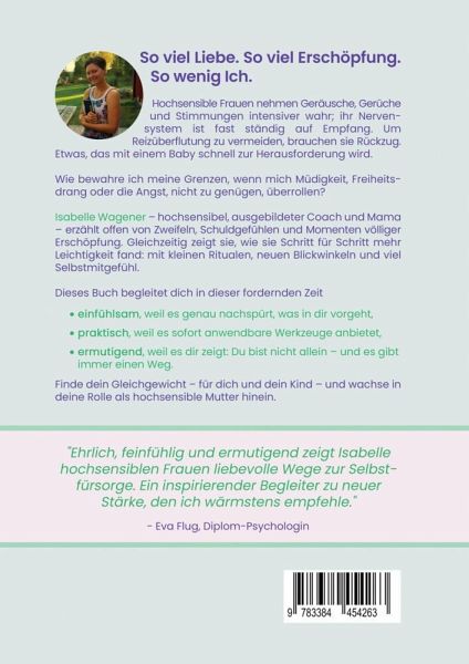 Isabelle Wagener ist freie Autorin und ausgebildeter Coach. Auf www.isilife.rocks bietet sie Unterstützung für hochsensible Frauen und insbesondere Mütter an. Als Scanner-Persönlichkeit arbeitet sie immer in verschiedenen Bereichen parallel. Das Thema Hochsensibilität begleitet sie - bewusst und unbe-wusst - schon ihr ganzes Leben. Ihr liegt viel daran, ihre Erfahrungen bezüglich der Hochsensibilität zu teilen, sodass mehr Menschen den Zugang dazu finden. Über die Jahre wurde der Umgang mit den daraus entstehen-den Herausforderungen so gut, dass sie sogar anfing, andere da-rin zu unterstützen, mehr Leichtigkeit und Selbstbestimmung zu erlangen. Bis ihr Sohn, ihr bisher größter Lehrmeister, in ihr Leben trat. Wissend, wie hart die Umstellung mit Kind für hochsensible Frauen sein kann, hat sie das Buch 'Zwischen Babyblues und Mutterglück - Sanfte Impulse & Halt für hochsensible Mamas' geschrieben.