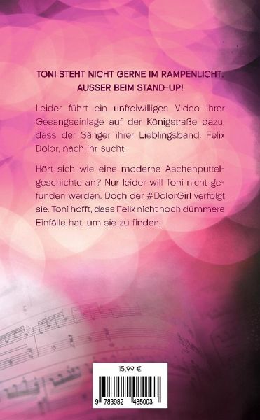 Toni steht nicht gerne im Rampenlicht.Außer beim Stand-up!Leider führt ein unfreiwilliges Video ihrer Gesangseinlage auf der Königstraße dazu, dass der Sänger ihrer Lieblingsband, Felix Dolor, nach ihr sucht.Hört sich wie eine moderne Aschenputtelgeschichte an?Nur leider will Toni nicht gefunden werden.Doch der #DolorGirl verfolgt sie.Toni hofft, dass Felix nicht noch dümmere Einfälle hat, um sie zu finden.