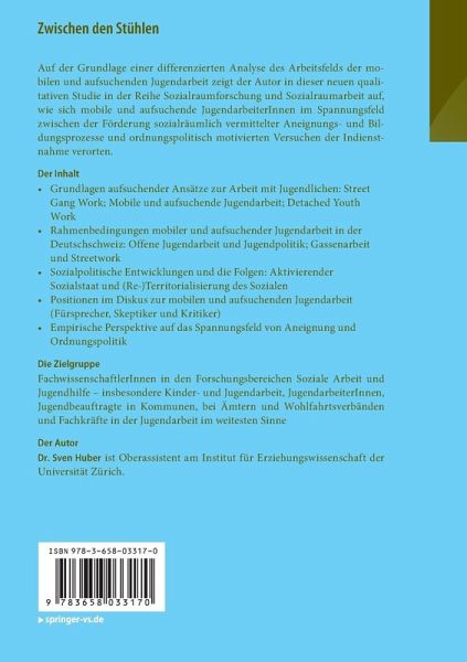 Basics der Ansätze zur Arbeit mit Jugendlichen: Street Gang Work.- Mobile Jugendarbeit.- Aufsuchende Jugendarbeit.- Detacht Youthg Work.- Mobile Jugendarbeit in der Deutschschweiz: Mobile und aufsuchende Jugendarbeit.- Offene Jugendarbeit und Jugendpolitik.- Gassenarbeit und Streetwork.- Sozialpolitische Entwicklungen und die Folgen: Aktivierender Sozialstaat und (Re)territorialisierung.- Positionen im Diskus und empirische Perspektive.