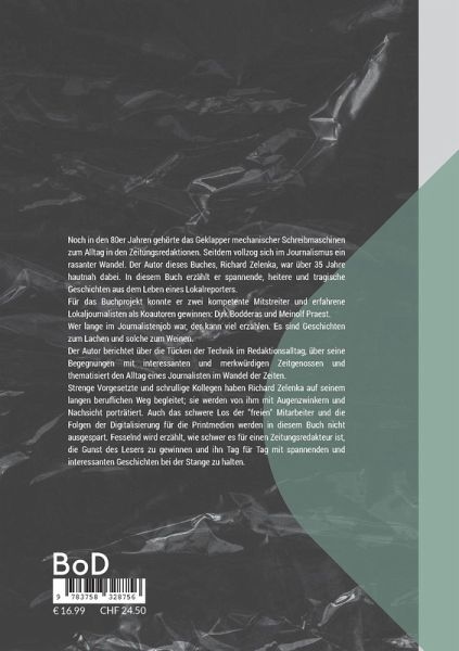 Noch in den 80er Jahren gehörte das Geklapper mechanischer Schreibmaschinen zum Alltag in den Zeitungsredaktionen. Seitdem vollzog sich im Journalismus ein rasanter Wandel. Der Autor dieses Buches, Richard Zelenka, war über 35 Jahre hautnah dabei. In diesem Buch erzählt er spannende, heitere und tragische Geschichten aus dem Leben eines Lokalreporters.Für das Buchprojekt konnte er zwei kompetente Mitstreiter und erfahrene Lokaljournalisten als Koautoren gewinnen: Dirk Bodderas und Meinolf Praest. Wer lange im Journalistenjob war, der kann viel erzählen. Es sind Geschichten zum Lachen und solche zum Weinen. Denn es sind auch tragische menschliche Schicksale, schwere Unfälle und verheerende Brände, die den Lokalreporter auf Trab halten.Der Autor berichtet über die Tücken der Technik im Redaktionsalltag, über seine Begegnungen mit interessanten und merkwürdigen Zeitgenossen und thematisiert den Alltag eines Journalisten im Wandel der Zeiten.Strenge Vorgesetzte und schrullige Kollegen haben Richard Zelenka auf seinem langen beruflichen Weg begleitet; sie werden von ihm mit Augenzwinkern und Nachsicht porträtiert. Auch das schwere Los der "freien" Mitarbeiter und die Folgen der Digitalisierung für die Printmedien werden in diesem Buch nicht ausgespart.Fesselnd wird erzählt, wie schwer es für einen Zeitungsredakteur ist, die Gunst des Lesers zu gewinnen und ihn Tag für Tag mit spannenden und interessanten Geschichten bei der Stange zu halten.