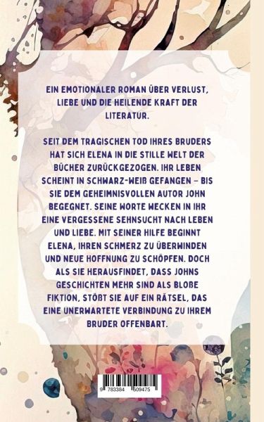 Ein emotionaler Roman über Verlust, Liebe und die heilende Kraft der Literatur.Seit dem tragischen Tod ihres Bruders hat sich Elena in die stille Welt der Bücher zurückgezogen. Ihr Leben scheint in Schwarz-Weiß gefangen - bis sie dem geheimnisvollen Autor John begegnet. Seine Worte wecken in ihr eine vergessene Sehnsucht nach Leben und Liebe. Mit seiner Hilfe beginnt Elena, ihren Schmerz zu überwinden und neue Hoffnung zu schöpfen. Doch als sie herausfindet, dass Johns Geschichten mehr sind als bloße Fiktion, stößt sie auf ein Rätsel, das eine unerwartete Verbindung zu ihrem Bruder offenbart.Gemeinsam begeben sich Elena und John auf eine Reise durch Geheimnisse, Schicksal und die Magie der Literatur. Ein Weg voller Hoffnung, Mut und der Erkenntnis, dass wahre Liebe und Heilung oft an den unerwartetsten Orten zu finden sind.Ein bewegender Roman für alle, die an die Macht der Worte glauben:Für Fans von Jojo Moyes und Nicolas Sparks.Eine Geschichte über Verlust, Hoffnung und Neuanfang.Literatur als Schlüssel zu Liebe und Heilung.Perfekt für alle, die emotionale und tiefgründige Liebesgeschichten lieben.