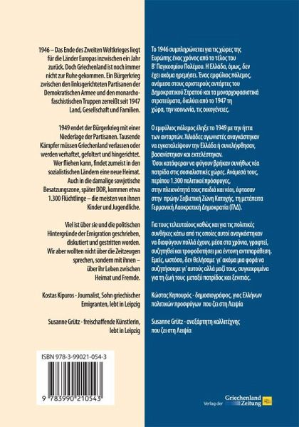 1946 - Das Ende des Zweiten Weltkrieges liegt für die Länder Europas inzwischen ein Jahr zurück. Doch Griechenland ist noch immer nicht zur Ruhe gekommen. Ein Bürgerkrieg zwischen den linksgerichteten Partisanen der Demokratischen Armee und den monarchofaschistischenTruppen zerreißt seit 1947 Land, Gesellschaft und Familien. 1949 endet der Bürgerkrieg mit einer Niederlage der Partisanen. Tausende Kämpfer müssen Griechenland verlassen oder werden verhaftet, gefoltert und hingerichtet. Wer fliehen kann, findet zumeist in den sozialistischen Ländern eine neue Heimat. Auch in die damalige sowjetische Besatzungszone, später DDR, kommen etwa 1.300 Flüchtlinge - die meisten von ihnen Kinder und Jugendliche. Viel ist über sie und die politischen Hintergründe der Emigration geschrieben, diskutiert und gestritten worden. Wir aber wollten nicht über die Zeitzeugen sprechen, sondern mit ihnen - über ihr Leben zwischen Heimat und Fremde. Kostas Kipuros - Journalist, Sohn griechischer Emigranten, lebt in Leipzig Susanne Grütz - freischaffende Künstlerin, lebt in Leipzig