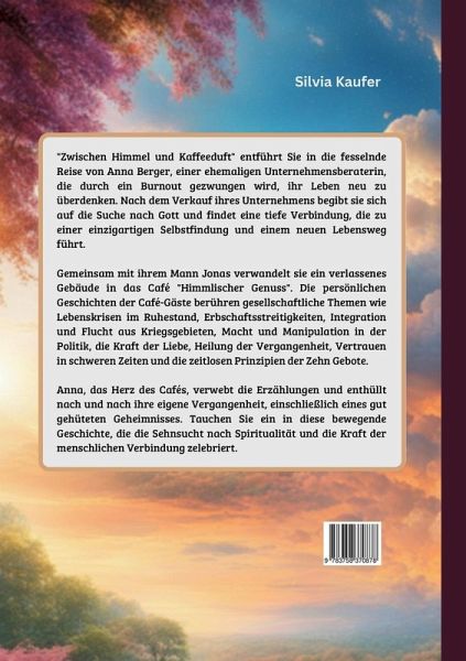 Willkommen in der inspirierenden Welt von "Zwischen Himmel und Kaffeeduft"! Dieser Roman ist mehr als nur eine Geschichte - er ist eine persönliche Reise voller Hoffnung, Erkenntnis und Inspiration, die Ihre Sehnsucht nach Spiritualität und die Kraft der menschlichen Verbindung zelebriert.Die fesselnden Geschichten entführen Sie in zwölf Kapiteln in eine Welt voller menschlicher Erfahrungen und spiritueller Erkenntnisse. Jedes Kapitel behandelt ein wichtiges gesellschaftliches Thema und bietet dabei berührende Einblicke in verschiedene Lebensgeschichten. Durch die Verbindung mit passenden Geschichten aus der Bibel erhält das Buch eine tiefe spirituelle Dimension."Zwischen Himmel und Kaffeeduft" richtet sich an Sie und alle anderen, die nach göttlicher Inspiration suchen und sich für die tiefgreifenden Themen des Lebens interessieren. Tauchen Sie ein in diese bewegende Reise, die die Essenz menschlicher Erfahrungen einfängt und Ihre Sehnsucht nach Spiritualität feiert.Erleben Sie die fesselnde Reise von Anna Berger, einer ehemaligen Unternehmensberaterin, die durch ein Burnout gezwungen wird, ihr Leben neu zu überdenken. Nach dem Verkauf ihres Unternehmens begibt sich Anna auf die Suche nach Gott und findet eine tiefe Verbindung, die zu einer einzigartigen Selbstfindung und einem neuen Lebensweg führt.Gemeinsam mit ihrem Mann Jonas verwandelt sie ein verlassenes Gebäude in das Café "Himmlischer Genuss". Die persönlichen Geschichten der Café-Gäste berühren gesellschaftliche Themen wie Lebenskrisen im Ruhestand, Erbschaftsstreitigkeiten, Integration und Flucht aus Kriegsgebieten, Macht und Manipulation in der Politik, die Kraft der Liebe, Heilung der Vergangenheit, Vertrauen in schweren Zeiten und die zeitlosen Prinzipien der Zehn Gebote.Anna, das Herz des Cafés, verwebt die Erzählungen und enthüllt nach und nach ihre eigene bewegende Vergangenheit, einschließlich eines gut gehüteten Geheimnisses.Tauchen Sie ein in diese bewegende Geschichte, die die Sehnsucht nach Spiritualität und die Kraft der menschlichen Verbindung zelebriert.