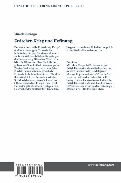 Der Autor beschreibt Entstehung, Kampf und Internierung der 2. polnischen Infanterieschützen-Division und untersucht die völkerrechtlichen Grundlagen der Internierung. Historiker führen eine lebhafte Diskussion über die Rolle der polnischen Streitkräfte in Westeuropa im Zweiten Weltkrieg und nach dem Krieg. Bis dato behandelten sie jedoch die 2. polnische Infanterieschützen-Division, ihre Aktivität in der Schweiz sowie das Schicksal der internierten Soldaten und Offiziere nach dem Krieg nur marginal. Der Autor geht dieser eher untypischen Geschichte der militärischen Einheit im Vergleich zu anderen Einheiten der polnischen Streitkräfte im Westen nach.
