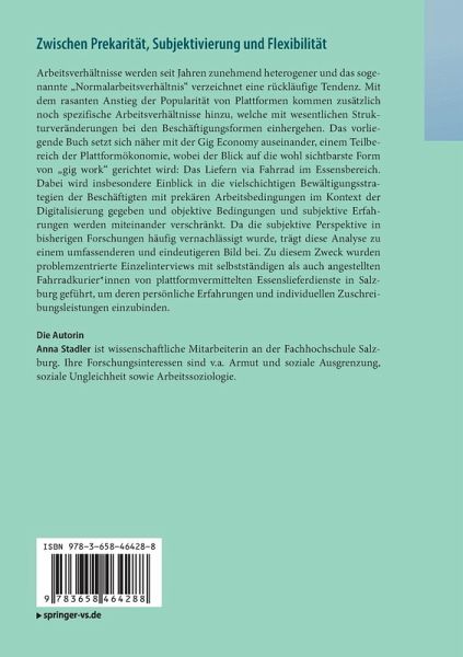 Arbeitsverhältnisse werden seit Jahren zunehmend heterogener und das sogenannte "Normalarbeitsverhältnis" verzeichnet eine rückläufige Tendenz. Mit dem rasanten Anstieg der Popularität von Plattformen kommen zusätzlich noch spezifische Arbeitsverhältnisse hinzu, welche mit wesentlichen Strukturveränderungen bei den Beschäftigungsformen einhergehen. Das vorliegende Buch setzt sich näher mit der Gig Economy auseinander, einem Teilbereich der Plattformökonomie, wobei der Blick auf die wohl sichtbarste Form von "gig work" gerichtet wird: Das Liefern via Fahrrad im Essensbereich. Dabei wird insbesondere Einblick in die vielschichtigen Bewältigungsstrategien der Beschäftigten mit prekären Arbeitsbedingungen im Kontext der Digitalisierung gegeben und objektive Bedingungen und subjektive Erfahrungen werden miteinander verschränkt. Da die subjektive Perspektive in bisherigen Forschungen häufig vernachlässigt wurde, trägt diese Analyse zu einem umfassenderen und eindeutigeren Bild bei.Zu diesem Zweck wurden problemzentrierte Einzelinterviews mit selbstständigen als auch angestellten Fahrradkurier_innen von plattformvermittelten Essenslieferdienste in Salzburg geführt, um deren persönliche Erfahrungen und individuellen Zuschreibungsleistungen einzubinden.