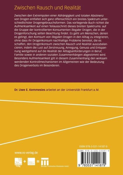 Zwischen den Extrempolen einer Abhängigkeit und totalen Abstinenz von Drogen entfaltet sich ganz offensichtlich ein breites Spektrum unterschiedlichster Drogengebrauchsformen. Das vorliegende Buch richtet die Aufmerksamkeit auf einen Teilausschnitt dieses breiten Spektrums: auf die Gruppe der kontrollierten Konsumenten illegaler Drogen, die in der Drogenforschung selten Beachtung findet. Es geht um Menschen, denen es gelingt, den Konsum von illegalen Drogen in den Alltag zu integrieren, ohne dass ihr Drogenkonsum nachhaltige Probleme bereitet, die es schaffen, den Drogenkonsum zwischen Rausch und Realität auszubalancieren, indem die Lust auf Zerstreuung, Anregung, Genuss und Entspannung weitgehend auf die Realität der Alltagsanforderungen in Beruf, Familie sowie in anderen sozialen Zusammenhängen abgestimmt wird. Besondere Aufmerksamkeit gilt in diesem Zusammenhang den wirksam werdenden Kontrollmechanismen im Allgemeinen wie der Bedeutung des Drogenverbots im Besonderen.