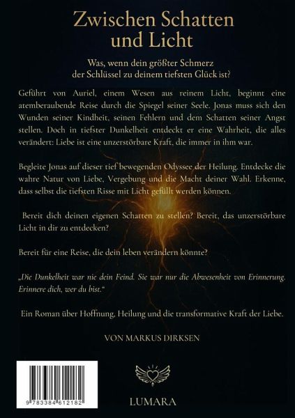 Geführt von weisen Begleitern wie dem Engel Auriel, Jesus und Buddha, beginnt Jonas eine Reise zu den Wurzeln seines Schmerzes und zu den universellen Wahrheiten über Liebe, Vergebung und Mitgefühl. Er stellt sich seinen inneren Schatten, lernt die Macht seiner eigenen Wahrnehmung kennen und entdeckt, wie er selbst die "dunkelsten Ecken seines Herzens" erhellen kann. "Zwischen Schatten und Licht" ist mehr als ein Roman - es ist eine Einladung, die eigene innere Landschaft zu erkunden, alte Wunden zu heilen und die transformative Kraft der Liebe als tägliche Wahl zu erfahren. Begleite Jonas auf seinem Weg vom gebrochenen Mann zum bewussten Schöpfer seines eigenen Glücks und entdecke mit ihm das größte Geheimnis, das das Leben zu bieten hat. Bist du bereit, dich auf diese Reise einzulassen?