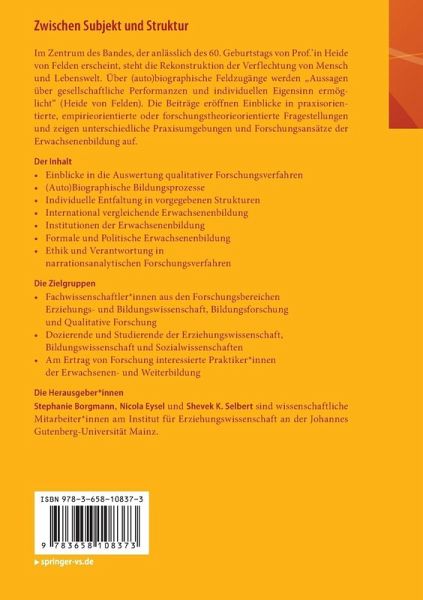 Im Zentrum des Bandes, der anlässlich des 60. Geburtstags von Prof.'in Heide von Felden erscheint, steht die Rekonstruktion der Verflechtung von Mensch und Lebenswelt. Über (auto)biographische Feldzugänge werden "Aussagen über gesellschaftliche Performanzen und individuellen Eigensinn ermöglicht" (Heide von Felden). Die Beiträge eröffnen Einblicke in praxisorientierte, empirieorientierte oder forschungstheorieorientierte Fragestellungen und zeigen unterschiedliche Praxisumgebungen und Forschungsansätze der Erwachsenenbildung auf.