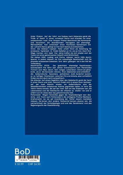 Unter Piraten: Auf der Fahrt von Sydney nach Valparaiso gerät die 'Pride of South' in einen schweren Sturm und strandet vor einer unbewohnten Insel. Eine Gruppe Piraten übernimmt das Kommando und terrorisiert die überlebenden Passagiere. Der ehemalige Marineoffizier Karl entwickelt einen Fluchtplan. Gemeinsam mit der Lehrerin Nancy gelingt es ihm nach Samoa zu entkommen. Onmi: Der Söldner-Captain Peter erhält Onmi als Belohnung für erwiesene Tapferkeit. Er findet Gefallen an ihr, sie an ihm. Doch ihre Wege trennen sich bald. Vier Jahre treffen sie sich wieder und der Traum von einer gemeinsamen Zukunft wird Wirklichkeit.Die sieben Höfe: Ludwig und Carina müssen sechs Höfe durch-queren; in jedem müssen sie ihre unbedingte Bereitschaft sich für einander einzusetzen beweisen. Erst dann gelangen sie in den Hof der 'Vollendung'.Raumfrachter XPZ15: Der 'geächtete' ehemalige Raumkreuzer-kommandant Fitz führt seit Jahren Erztransporte vom Planetoiden Tichroni zum Mars durch. Sein ruhiges Lotterleben nimmt ein jähes Ende, als er die Generalin Almuta, ihren Adjutanten und schließlich die Außerirdische Kassiolara aufnehmen muß. Zunächst kommt es zu heftigen Streitereien zwischen Fitz und Almuta, aber schließlich finden sie sich doch recht sympathisch. Die Atlanter: Auf einem Segeltörn über den Südatlantik gerät die Yacht in einen Sturm und sinkt. Heinrich findet sich in einem Krankenhaus auf der Insel Atlantis wieder, wo Außerirdische eine der Weltöffentlichkeit unbekannte Kolonie gegründet haben. Er lernt die Türkin Fatma kennen, die auf der Insel lebt um das Staatswesen, die Lebensweise und die Gebräuche der Atlanter zu studie-ren und er erfährt von ihr vieles über das geheimnisvolle Volk.Pottenwald: Wegen Verstoßes gegen die 'Staatsideologie' werden Anita und Frank nach Pottenwald in die entlegene Provinz Markland strafversetzt, wo sie auf Anordnung der 'Partei' zusammenleben müssen. Sie lernen dort andere 'Verbannte' kennen, ebenso wie die Lächerlichkeitder Parteiideologie und und des 'Benehmens' und des Regierungsstils der Staatsführung.