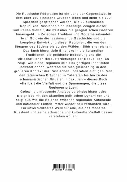 Die Russische Föderation ist ein Land der Gegensätze, in dem über 160 ethnische Gruppen leben und mehr als 100 Sprachen gesprochen werden. Die 22 autonomen Republiken Russlands sind lebendige Zeugen dieser kulturellen Vielfalt, die weit über die geografischen Grenzen hinausgeht. In Zwischen Tradition und Moderne erkundet Iwan Golowin die faszinierende Geschichte und die komplexe Entwicklung dieser Regionen, die von den Steppen des Südens bis zu den Wäldern Sibiriens reichen.Das Buch bietet tiefe Einblicke in die kulturellen Traditionen, die politische Bedeutung und die wirtschaftlichen Herausforderungen der Republiken. Es zeigt, wie diese Regionen ihre einzigartigen Identitäten bewahrt haben, während sie sich gleichzeitig in den größeren Kontext der Russischen Föderation einfügen. Von den tatarischen Bräuchen in Tatarstan bis hin zu den schamanistischen Ritualen in Jakutien - dieses Buch offenbart die Vielfalt und die Spannungen, die diese Regionen prägen.Golowins umfassende Analyse verbindet historische Ereignisse mit den aktuellen politischen Dynamiken und zeigt auf, wie die Balance zwischen regionaler Autonomie und nationaler Einheit immer wieder neu verhandelt wird. Ein unverzichtbares Werk für alle, die das moderne Russland und seine ethnische und kulturelle Vielfalt besser verstehen wollen.