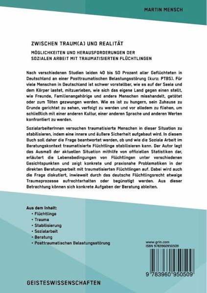 Nach verschiedenen Studien leiden 40 bis 50 Prozent aller Geflüchteten in Deutschland an einer Posttraumatischen Belastungsstörung (kurz: PTBS). Für viele Menschen in Deutschland ist schwer vorstellbar, wie es auf der Seele und dem Körper lastet, mitzuerleben, wie sich das eigene Land gegen einen stellt, wie Freunde, Familienangehörige und andere Menschen misshandelt, getötet oder zum Töten gezwungen werden. Wie es ist zu hungern, sein Zuhause zu Grunde gerichtet zu sehen, verfolgt zu werden und vor alledem zu fliehen, um schließlich mit einer anderen Kultur, einer anderen Sprache und anderen Werten konfrontiert zu werden.SozialarbeiterInnen versuchen traumatisierte Menschen in dieser Situation zu stabilisieren, indem eine innere und äußere Sicherheit aufgebaut wird. In diesem Buch soll daher die Frage beantwortet werden, ob und wie die Soziale Arbeit im Beratungskontext traumatisierte Flüchtlinge stabilisieren kann. Der Autor legt das Ausmaß der aktuellen Situation mithilfe von offiziellen Statistiken dar, erläutert die Lebensbedingungen von Flüchtlingen unter verschiedenen Gesichtspunkten und zeigt konkrete und praxisnahe Problematiken in der direkten Beratungsarbeit mit traumatisierten Flüchtlingen auf. Dabei wird auch die Frage diskutiert, inwieweit durch das deutsche Flüchtlingsrecht etwaige Traumaprozesse aufrechterhalten oder begünstigt werden. Aus dieser Betrachtung können sich konkrete Aufgaben der Beratung ableiten.Aus dem Inhalt:- Flüchtlinge;- Trauma; - Stabilisierung; - Sozialarbeit;- Beratung;- Posttraumatische Belastungsstörung