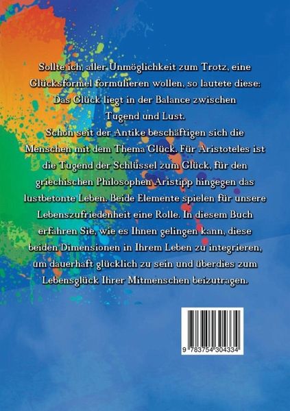 Sollte ich, aller Unmöglichkeit zum Trotz, eine Glücksformel formulieren wollen, so lautete diese: Das Glück liegt in der Balance zwischen Tugend und Lust, zwischen Selbsttranszendenz und Vergnügen, zwischen Selbstvergessenheit und Selbstfürsorge. Schon seit der Antike beschäftigen sich die Menschen mit dem Thema Glück. Aristoteles hält das tugendreiche Leben für den Schlüssel zum Glück. Der griechische Philosoph Aristipp hingegen begründet den Hedonismus und betrachtet das lustbetonte Leben als das eigentliche Glück. Diese beiden Weltbilder stehen in starkem Kontrast zueinander. Wir können auch sagen, dass die eine Richtung mehr auf das längerfristige Glück abzielt und die andere Richtung mehr auf das kurzfristige Vergnügen. Beide Elemente spielen für unsere Lebenszufriedenheit eine Rolle. Wir bewegen uns permanent im Spannungsfeld zwischen Tugend und Lust. Wenn es uns gelingt, diese beiden Dimensionen in ausgeglichenem Maß in unser Leben zu integrieren, dann werden wir selbst ein erfülltes Leben führen und andere in ihrem Dasein bereichern und zu deren Lebensglück beitragen. In diesem Buch finden Sie im ersten Teil Hinweise darauf, was ein tugendhaftes Leben ausmacht und wie Sie es erreichen können. Im zweiten Teil werden die Aspekte der Selbstfürsorge und Lust näher beleuchtet, während sich im dritten Teil konkrete Praxistipps zum Glücklichsein finden, die Sie direkt in Ihrem Alltag umsetzen können.