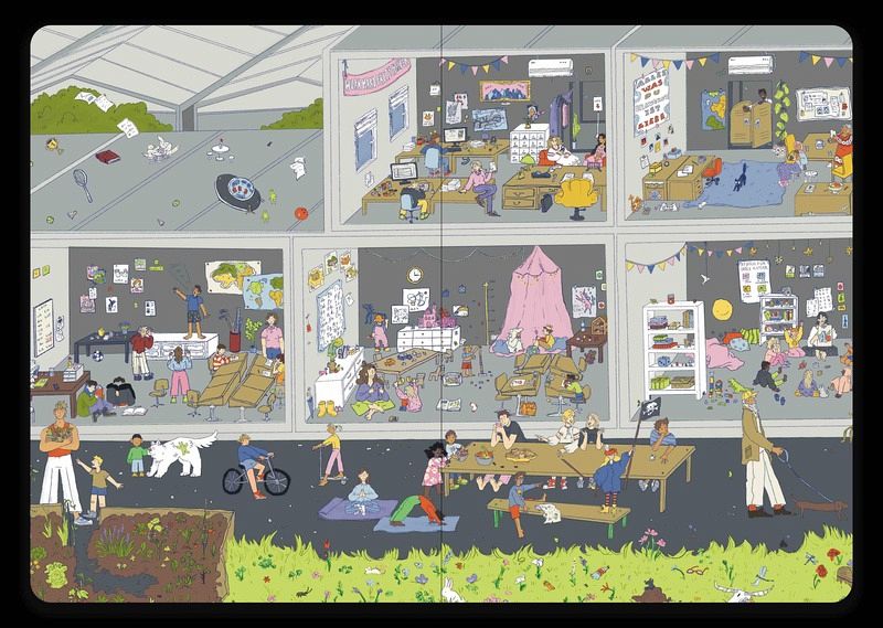Tausende Menschen, die vor dem Krieg in der Ukraine und in anderen Ländern flüchten müssen, suchen Schutz in der Schweiz. Das Wimmelbuch zeigt, wie es den unterschiedlichen Menschen beim Ankommen 'zwischen Welten' ergeht und wie das Zusammenleben am neuen Ort funktioniert. Wie leben geflüchtete Menschen, wenn sie bei uns gerade erst angekommen sind? Was tun sie den ganzen Tag in einer ersten, vorläufigen Unterkunft? Welchen anderen Menschen begegnen sie dort? Wie ist der Kontakt zu den Bewohner*innen in der Nachbarschaft? Und was sind die Herausforderungen in ihrem neuen Alltag? Das Wimmelbuch 'Zwischen Welten' entstand in der Temporären Unterkunft Viererfeld in Bern. Diese Kollektivunterkunft wurde vom Kanton Bern in wenigen Monaten erstellt und eingerichtet, um mehr Platz für Geflüchtete zu schaffen, nachdem im Februar 2022 der Krieg in der Ukraine begonnen hatte. Zunächst vor allem Ukrainer*innen, später auch Asylsuchende aus anderen Ländern fanden in der Unterkunft ein temporäres Zuhause. Illustriert hat das Wimmelbuch die ukrainische Studentin und Illustratorin Sofiia Borshch. Ebenfalls vor dem Krieg in die Schweiz geflüchtet, arbeitet sie als Klassenassistentin in der Schule des Dorfs auf Zeit. Ihre Beobachtungen und Erfahrungen hat sie in die sieben Wimmelbilder dieses Buchs verpackt. Die Bilder zeigen eine persönliche Erfahrung und bieten dennoch Anknüpfungspunkte für die Auseinandersetzung mit ähnlichen Erlebnissen, Situationen und Orten. Als Verlag freuen wir uns, mit diesem Wimmelbuch authentische Einblicke in eine Lebensrealität zu vermitteln, die sich ganz in unserer Nähe abspielt und doch den meisten verschlossen bleibt.