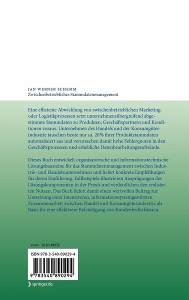 Dieses Buch entwickelt organisatorische und informationstechnische Lösungsbausteine für das Stammdatenmanagement zwischen Industrie- und Handelsunternehmen und liefert konkrete Empfehlungen für deren Einführung. Fallbeispiele illustrieren Ausprägungen der Lösungskomponenten in der Praxis und verdeutlichen den realisierten Nutzen. Das Buch liefert damit einen wertvollen Beitrag zur Umsetzung einer intensiveren, informationssystemgestützten Zusammenarbeit zwischen Handel und Konsumgüterindustrie als Basis für eine effektivere Befriedigung von Kundenbedürfnissen.