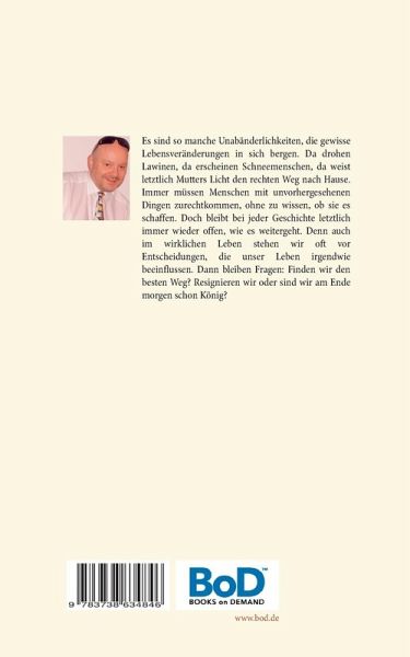 Es sind so manche Unabänderlichkeiten, die gewisse Lebensveränderungen in sich bergen. Da drohen Lawinen, da erscheinen Schneemenschen, da weist letztlich Mutters Licht den rechten Weg nach Hause. Immer müssen Menschen mit unvorhergesehenen Dingen zurechtkommen, ohne zu wissen, ob sie es schaffen. Doch bleibt bei jeder Geschichte letztlich immer wieder offen, wie es weitergeht. Denn auch im wirklichen Leben stehen wir oft vor Entscheidungen, die unser Leben irgendwie beeinflussen. Dann bleiben Fragen: Finden wir den besten Weg? Resignieren wir oder sind wir am Ende morgen schon ein König?